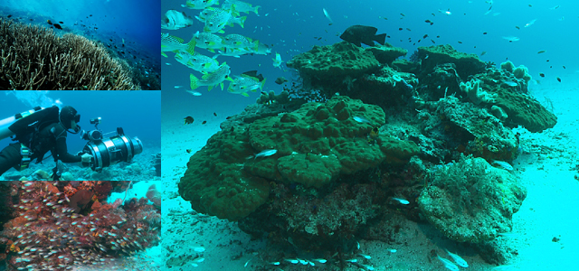今回、向かった先は、インドネシア、西パプア州、ラジャアンパット。 大小600以上の島からなるこの海域は、地球上で最も生物の多様性に富んだサンゴ礁として、 近年、研究者の注目を集めています。 この海域に生息する魚はなんと1500種以上。サンゴの種類は550種を越えます。 ニュースにもなった新種の“歩く”サメなど、調査するたびに新種の生物が見つかっている驚異の海です。 私たちが取材に訪れたのは7月下旬。 ラジャアンパットの玄関口、ソロンからスピードボートで2時間のところにある、クリ島をベースに取材をしました。