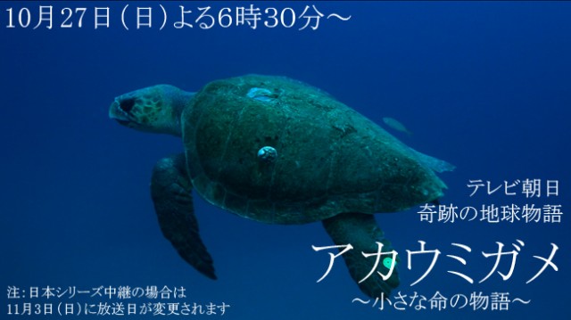 奇跡の地球物語「アカウミガメ」放送! 先日、取材させていただいた番組が放送になります! テレビ朝日 奇跡の地球物語 アカウミガメ ~小さな命の物語~ 10月27日(日)よる6時30分から 注:日本シリーズ中継中止の場合 日本シリーズの中継があった場