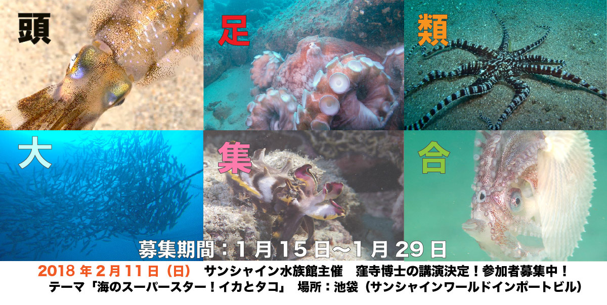 <参加者募集>サンシャイン水族館 窪寺博士のイカとタコの講演 サンシャイン水族館にて窪寺恒己博士の講演開催 参加者募集!日程:2018年2月11日(日)/ 募集期間:1月15日(月)〜1月29日(月)★ゾクゾク深海生物2018 特別トークショー★ サンシャイン水族館では深海生物に