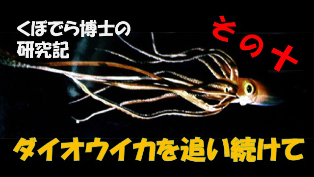 窪寺博士の「ダイオウイカを追い続けて その18」公開! 窪寺博士 ダイオウイカブログ 第18回公開!https://ch.nicovideo.jp/juf25sui/blomaga/ar1710550 窪寺博士のダイオウイカ調査が、 日本学術振興会に「独創的・先駆的な研究