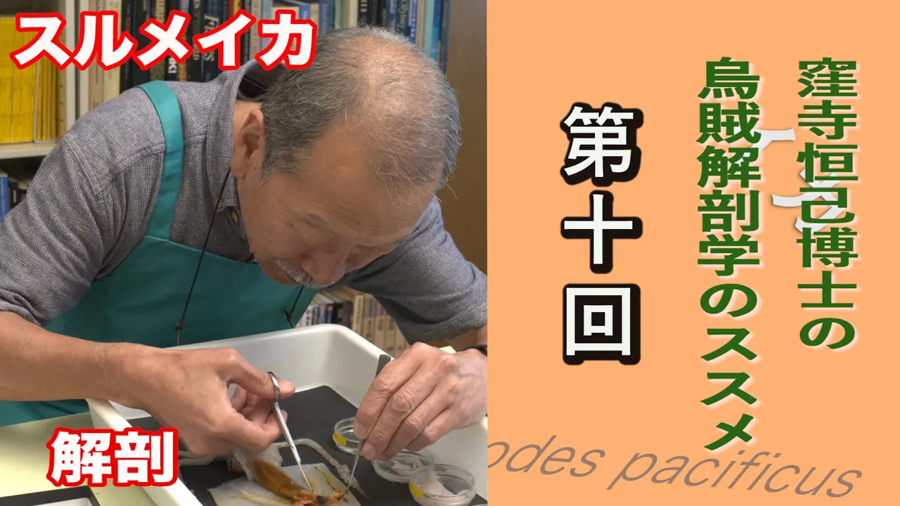 窪寺博士のスルメイカ解剖学のススメ第9回 公開! 【スルメイカの解剖 第9回 メスの生殖腺】ダイオウイカ研究の窪寺恒己博士によるYoutube授業です! スーパーで買ってきた冷凍のスルメイカを、専門家が解説するとおもしろーい。今回はメスの生殖腺がテーマです。窪寺博士の解