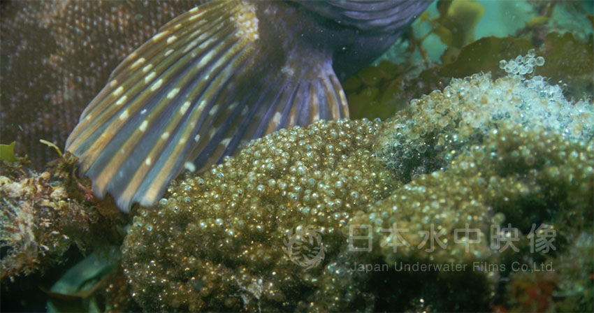 12/21 山口県にて水中撮影 この卵は・・・ 山口県で撮影いたしました(上記画像は動画より切り出した静止画像です。)大きな胸ビレ、こんもりした卵塊・・・ 冬の到来を感じさせる「アイナメの卵」でございます! この卵を守っているのはお父さん。他の生き物に食べられないよう