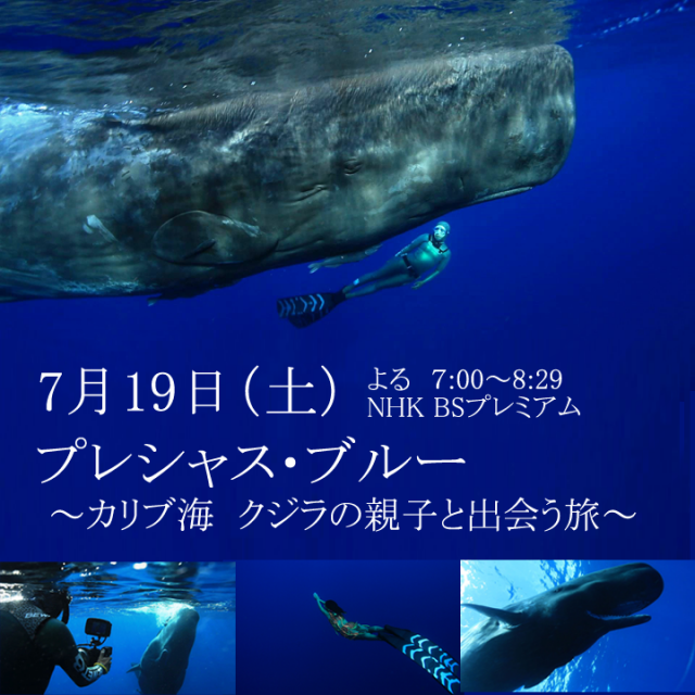 7月19日(土)NHK プレシャス・ブルー 放送! 番組放送のお知らせです! ザ・プレミアム プレシャス・ブルー ~カリブ海 クジラの親子と出会う旅~ 7月19日(土) よる7:00~8:29 NHK BSプレミアム 出演は、フリーダイバー・水中表現家の二木あいさ