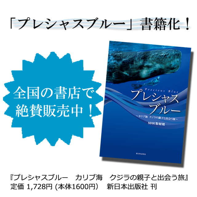 「プレシャスブルー」書籍 発売中! お知らせです!奥村カメラマンが水中撮影を担当した 「プレシャス・ブルー ~カリブ海 クジラの親子と出会う旅~」が書籍になりました! 「プレシャスブルー カリブ海 クジラの親子と出会う旅」 著者: NHK取材班 出版: