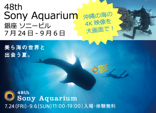 「48th Sony Aquarium」スタート! 先日、沖縄県の西表島と石垣島で撮影した4Kの映像が、 7月24日から9月6日の間、銀座のソニービルで開催される「48th Sony Aquarium」 にて上映されます。6月中旬、梅雨が明けたばかり西表島と石垣島の海で、