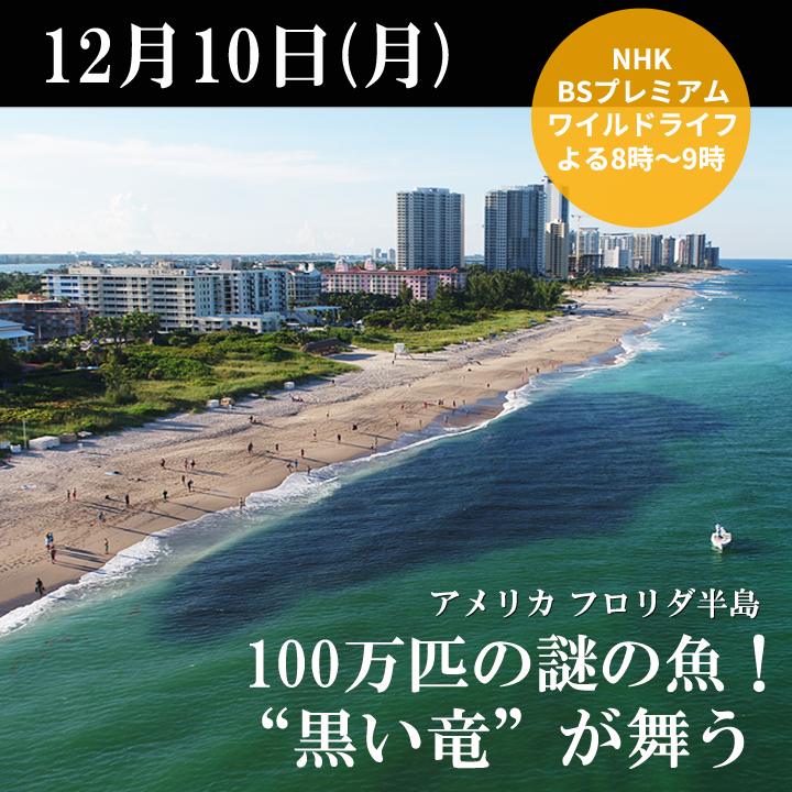 12月10日(月) NHKワイルドライフ フロリダ半島「100万匹の謎の魚!“黒い竜”が舞う」 放送予定 番組放送のお知らせです!先日、アメリカ合衆国のフロリダ半島で撮影した番組が放送されます。NHK BSプレミアム ワイルドライフ 12月10日(月) 午後8時00分~ 午後9時00分 アメリカ フロリダ半島 100万匹の謎