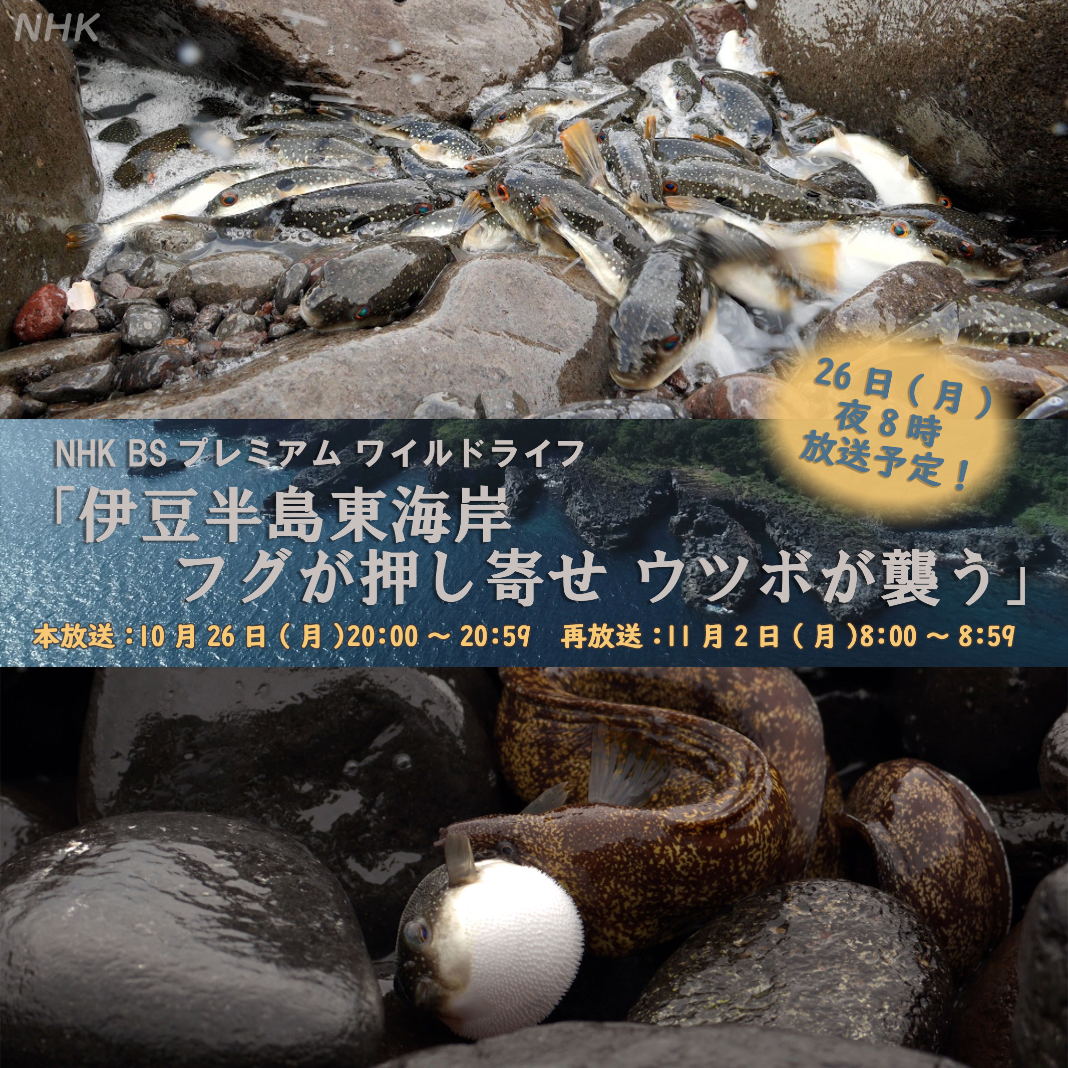 ワイルドライフ「伊豆半島東海岸 フグが押し寄せ ウツボが襲う」NHK総合で再放送! 番組放送のお知らせです! NHK 総合 ワイルドライフ 「伊豆半島東海岸 フグが押し寄せ ウツボが襲う」 放送日:11月29日(火)午前0:55~ 2020年10月に放送されたこちらの番組が、地上波初登場! 2020年度